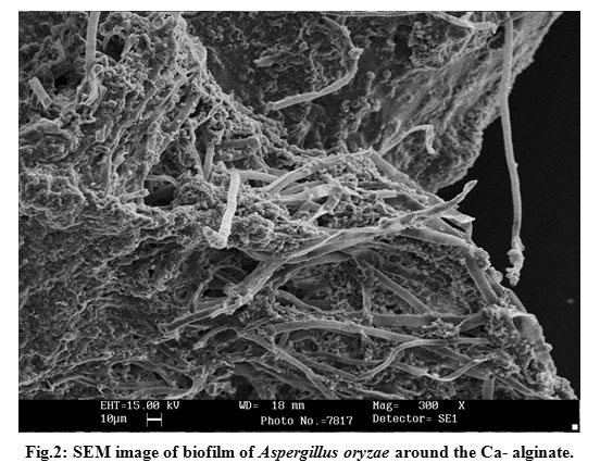 Figure 2: SEM image of biofilm ofAspergillus oryzaearound the Ca- alginate. Click here to View figure |