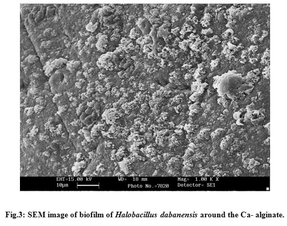 Figure 3: SEM image of biofilm ofHalobacillus dabanensisaround the Ca- alginate. Click here to View figure |