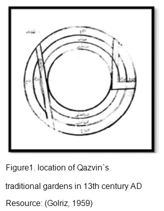 In addition to Nasir Khosrow Qobadiani (Qobadiani., 1997)who has mentioned the disclosed orchards of Qazvin in his travelogue, Zakariya Qazvini in his book namely Athar-al-Belaud (Golriz., 1959),has also described Qazvin at the beginning of 13th century AD as such: Qazvin is a very big and populated city located in a vast and flat plain with a brilliant plan. In fact, it was the variable vegetation and the fruit trees of the orchards, in such a relatively dry land with no permanent river, which had attracted the attention of the travelers.