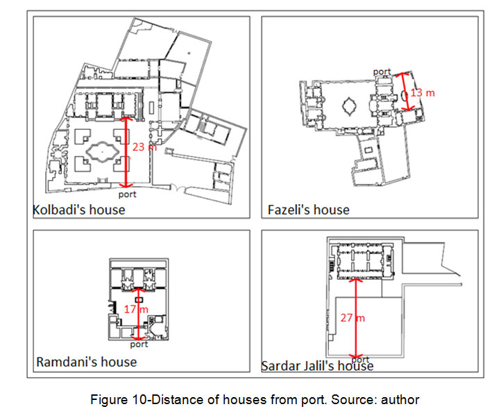 加尔巴迪,Fazeli和Ramdani的房屋有两个楼层,萨达尔·杰利尔的房子有三层。由于港口和有限数量的建筑物距离相当大的建筑物(楼层数量有限),没有可能从外出空间到房屋的视野。此外,所描述的房屋对其他房屋没有任何愿景。