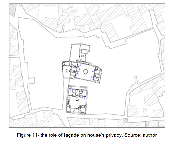 在传统建筑中,所有的建筑和房屋都以协调的方式建造,因此不会侵犯视觉隐私。阳台和门廊的形式不能俯瞰邻近的房子。对隐私的信念是,在外部façade上不应该有一个连接外部的洞。(bemanian等。,2010)。(纪念纪念,2010)。