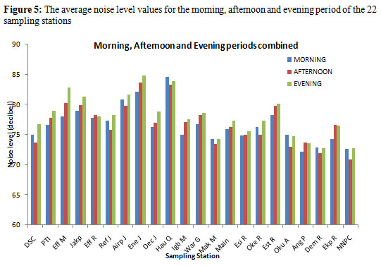 在当天的时间(早上,下午和晚),在特定抽样站的平均噪声水平值中没有显着差异(p> 0.05)。