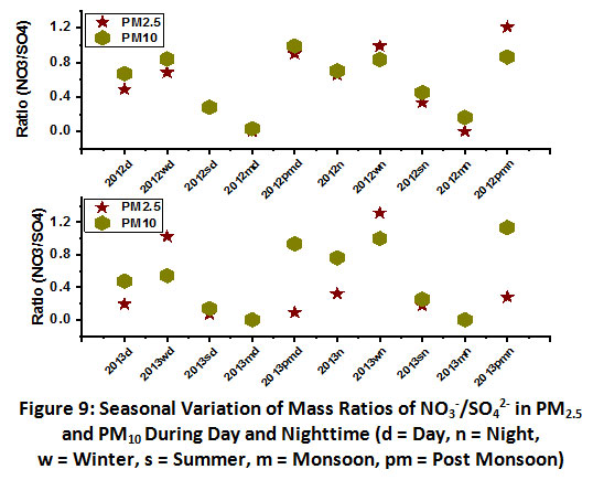图9:NO质量比的季节变化3.-/所以42 -在点2.5和点10白天和晚上。 点击此处查看数字 |