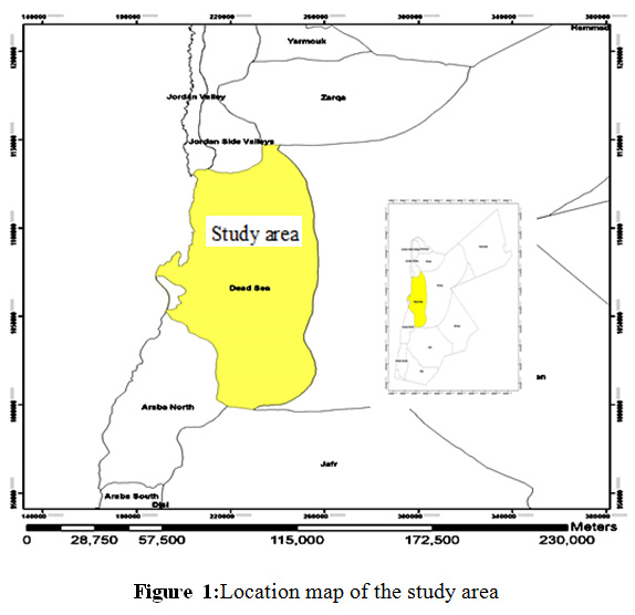 The area is affected by the Dead Sea transform system, with elevation ranging from 1260 above the mean sea level(msl) in the northern and southern part of the study area to about 180 (msl) near the Dead Sea. Three main topography features are found in the study area, the plateau feature, highlands toes in the far eastern part, and steep slopes and sharply elevation in the highlands along the Dead Sea escarpment,3There are several wadis running along the study area, these are Wadi Mujib, Wadi Heedan, Wadi Hasa, Wadi Issal, Wadi Numera, Wadi Ibn Hammad, and Wadi Zarqa Main. The surface water flows westward to the Dead Sea in the lower aquifer, and discharges as thermal water in Zarqa main. The agricultural activities in the study area is affected by climate, topography, soil lesser extent, and availability of supplementary moisture supply, in the recent decades. Many agricultural activities had been developed in the area.