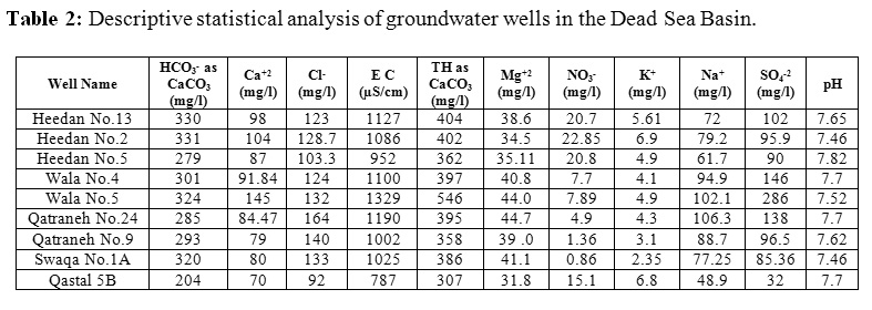 Table 2: Descriptive statistical analysis of groundwater wells in the Dead Sea Basin. Click here to View table |