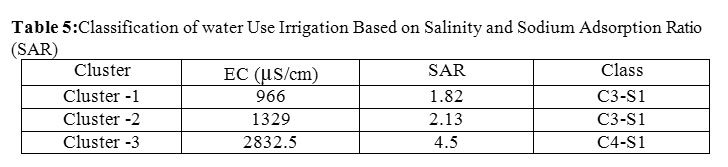Table 5: Classification of water Use Irrigation Based on Salinity and Sodium Adsorption Ratio (SAR) Click here to View table |